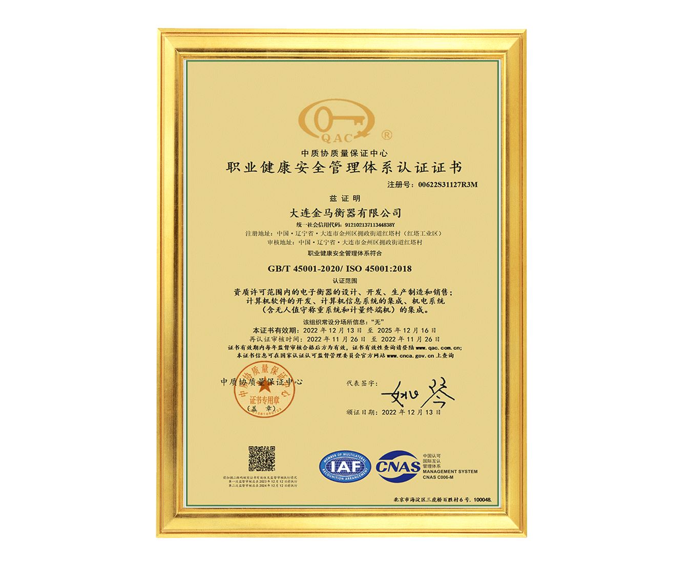大連金馬衡器校準實驗室(CNAS)