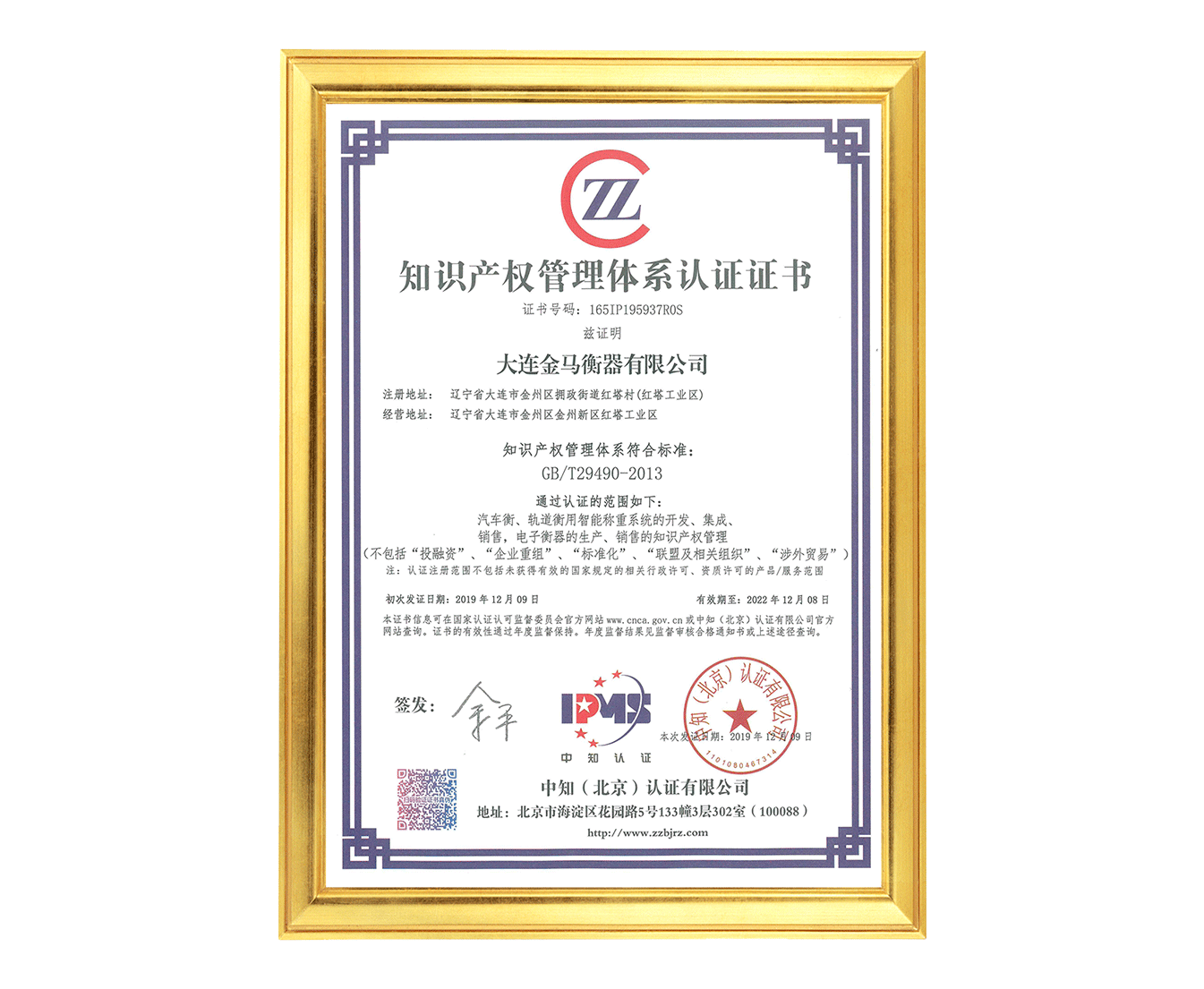 知識產權管理體系認證證書(貫標)