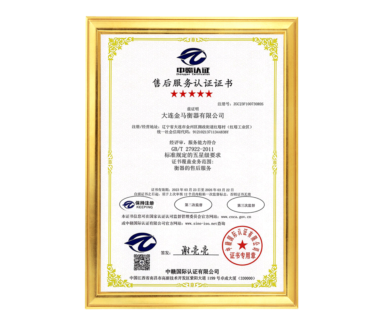 五星售后服務認證